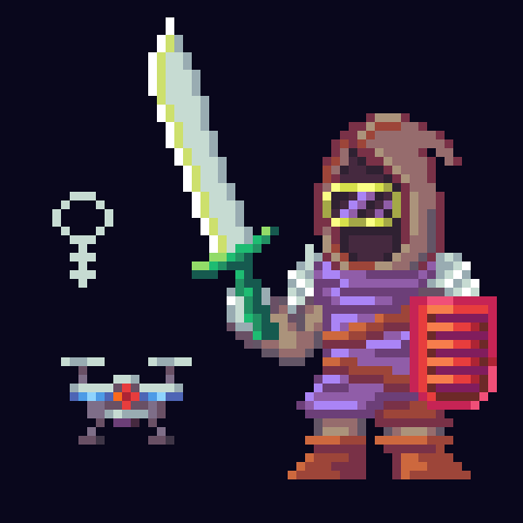 Cerb is the creation of Wizard #113 and the other Blue Wizards. He a technological marvel, part humanoid and part machine. He has the interface, the technology and the tactics to fight, research and recon. Cerb is a nice warrior-bot / warrior / person. He rides a Mecha Pony and lives near the Black Sands. He does travel frequently to the Blue Wizard Bastion and the Wizard Encampment to help Hadrien, Merlon, Wild Mage and other famous wizards on quests.