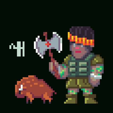 Kwame Exterminator of Blood is a formidable presence within the Runiverse, a warrior whose very name evokes both awe and fear. Adorned in commando fatigues that blend into the green backdrop of the wilds, Kwame is a master of guerrilla warfare. His attire is not just for combat efficiency; it symbolizes his connection to the earth, his adaptability, and his relentless pursuit of justice against those who spill innocent blood.