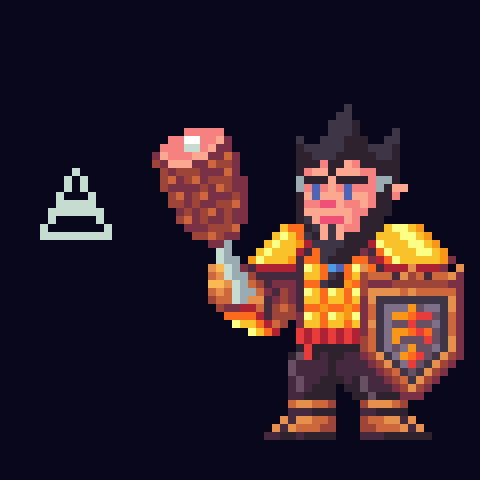 BORIS BORIS BORIS... a hungry warrior, some would say. You may notice his lack of companion. But look closer... what is in his hand? Boris once had a companion, a ham named Norris. However... after much struggle and argument one day in the forest, Boris decided to eat Norris. Rumor has spread of Boris's ex-Norris, and no other companion will come near. Beware leaving yours unattended near Boris.