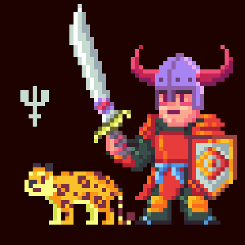 Darkness crept over the land as a fearsome beast arose. Unshaken, Grunkol, with his mighty shield and fearless heart, faced the creature. The battle was swift; his sword sang, the jaguar struck, and they vanquished the darkness together.