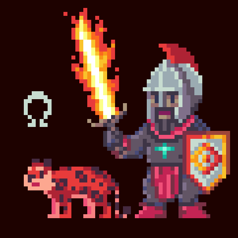 Marcellus has lived a noble life thus far living in the Tower as his current residence. He has been known to chop anything in his path with his flaming firebrand sword and even has his loyal companion Milano the Jaguar by his side. He holds a Tanker Heater shield as a family memento. His entire family holds and battles with these shields and are passed down to further generations as they bring good luck and protection while wielding the flaming weapons that they possess.