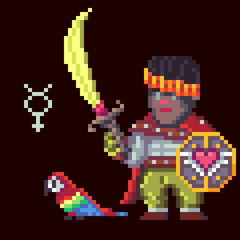On his shoulder perches a scarlet Macaw, With feathers as fiery as the sunset's awe. Kim is her name, his obsession and pride, In every battle, she’s there by his side.