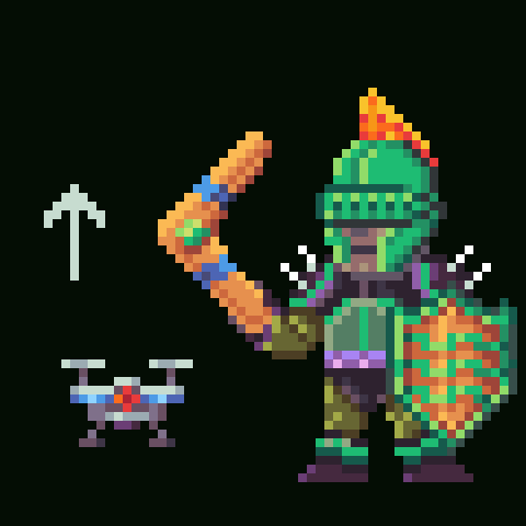 Matthew used to be a knight but did not like the way that the kingdom treated the villages, so he destroyed the whole army and nobility. Besides his drone, Matthew is equipped with big green armor, which resembles a turtle, just as his name describes. Matthew also has a big shield to protect him and his drone along with a big Jungle Boomerang that was passed down to him after his father’s death. He honors his father by using the boomerang to destroy any person or demon that steps in front of him.