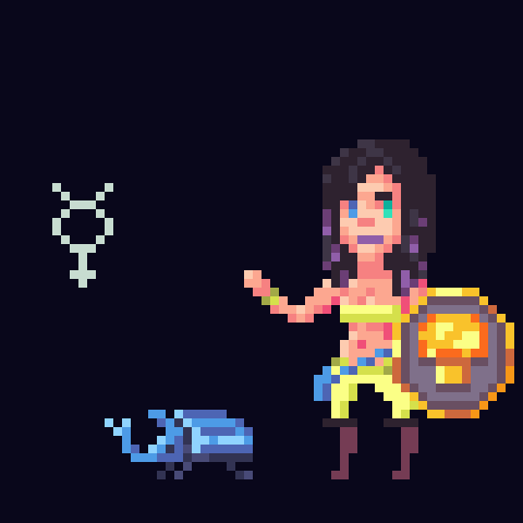 Alesssandra Armageddon of the Hall, a name that resonates with a fierce and indomitable spirit, is a figure of immense power and mystery within the Runiverse. Her appearance is as striking as her reputation, donned in a Dominatrix headpiece, a Yellow Amazonian Jumpsuit that clings to her like a second skin, showcasing her battle-ready physique and warrior's poise. Her choice of shield, the Mushroom Shield, is not just for defense but a symbol of her connection to the earth and its hidden powers. By her side, an Ultramarine Rhinoceros Beetle, a companion as rare and formidable as Alesssandra herself, signifies her dominion over both the natural and supernatural realms. The Rune of Mercury she bears is a testament to her swift and untraceable movements in battle, as well as her mercurial temperament, making her an unpredictable ally and a fearsome enemy.