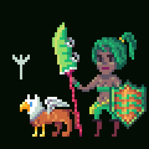 Her days are lonely, as she has no choice but to spear any living thing she encounters. She tiptoes silently through the regions of those who broke her spirit and left her scorned. Her griffin distracts with his beauty from above as she strikes down any who cross her path.