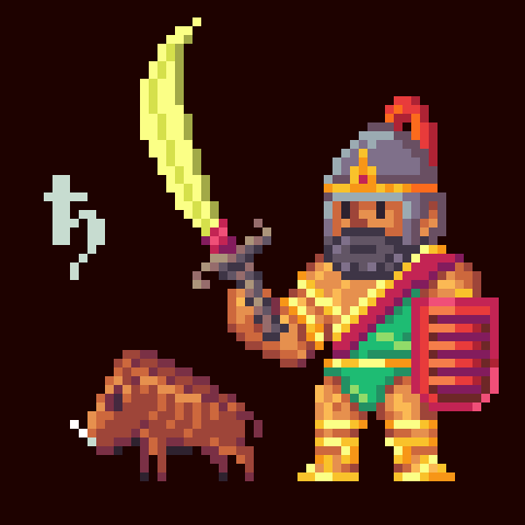 Under the blazing sun of the Endless Sands, where the dunes shift like restless waves, strides Rakim, the legendary Trimmer of the Desert. Armed with his fearsome Curved Blade of Winds and shield etched with ancient runes, Rakim is both a warrior and a wanderer. Beside him trots Korra, a steadfast desert boar, her tusks sharp and her loyalty unwavering.