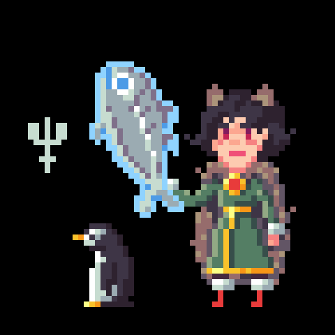 Often referred to as the "Princess of Penguin Capital" she plays a key role as one of the mightiest protectors of the city. She made her way up north from the Hall of Cats where she was born and raised in order to feast on all the fish she could ever want. In exchange for her protection, the penguins of the capital gladly supply her with enough fish for a lifetime. Dango, her trusted penguin companion, wears a green bandana around his neck and aids her in combat by throwing small frozen fish as if they were kunai knives. He's not very good at close quarter's combat but provides helpful support in stealth.
