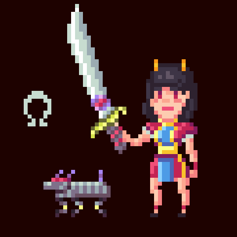 Don't be fooled by her small stature. Chihiro is a fierce and formidable warrior. She's been blessed with the power of the rune of omega. This imbues her with far more might than meets the eye. She is blindingly fast, agile, and highly skilled in the art of sword weaving. Those who see her fight describe it as a graceful yet violent dance. She has a faithful robodog companion named Hikari, who can emit blasts that stun, blind, and distract enemies.