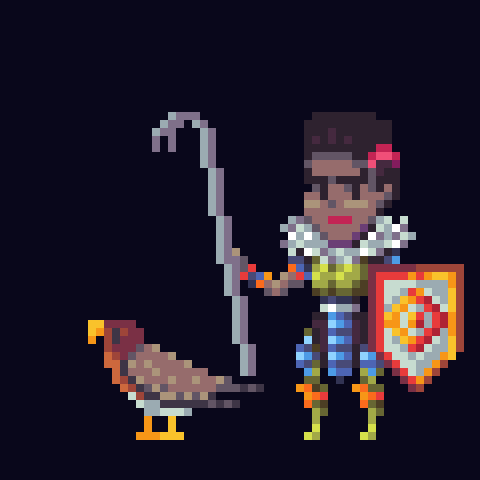 Sekai Nailer of the Grass was born long ago to the people of the grasslands. She was a young warrior in training when she was attached in a back alley near her home. A little birdie, Chini, came flying down and began to peck at the attacker to distract them while Sekai was able to find a crowbar laying on the ground nearby. She used the weapon to finish off the attacker and then returned home without a scratch. Chini would continue to go into battle with her from there on out, and her weapon of choice became the crowbar which she learned to master over time.