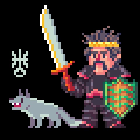 Another pause. From the brush, a Grey Wolf emerged. Said to inhabit the woods, it was a rare encounter to witness a natural creature of this caliber sweeping through the fog. Their eyes met, sharing the sullen gaze of a lone wanderer. Canines bared and cleaver drawn, their fangs were on display. Neither of them inherently evil, they studied each other, calculating. A moment of near aggression between them transformed into a solemn, mutual acknowledgment of the other’s capacity for slaughter. The man brought out what scraps of meat he had left and tossed them to the wolf, a gesture which was received. A connection made, an understanding that they could go their separate ways, overruled by an intuition that they may survive better together.