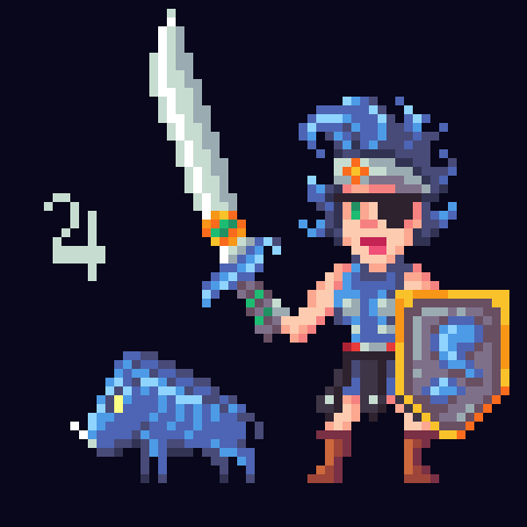 Blake was born outside Calista’s Citadel and Alessar’s Keep. Reaching adulthood she was a legend to the pirates along the coast. She used her beauty as a way to get what she wants. Her sword would swing faster than you can say "Arrgh" and send you straight to the underworld. She lost her eye fighting over a rare yellow diamond in her headband. Kisses is her blue razorback that helps her fight. He got his name because he throws you a kiss before he bites a chunk out of you.
