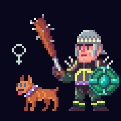 Even though these days are long gone, Audax's distaste for frog kind has persisted and grown stronger. After training his field hound to sniff them out, Audax equiped himself with everything he needed to deal with them. Spiked bat and Chelonian armor together make it very difficult for soft little frogs to get within range.