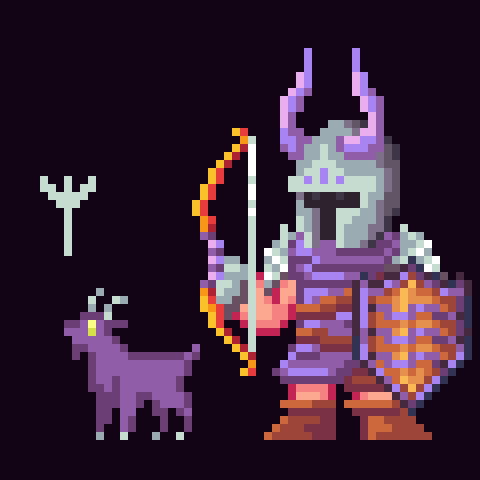 The goat lingered over the helm and all of the sudden the horns of the goat started to glow an iridescent purple. The glow then started to creep onto the horns of the helmet until they were the same exact color.
