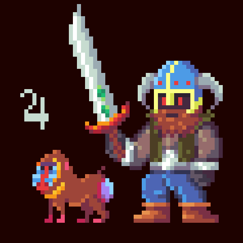 Rumbar the champion of Warrior Alley dawns a blue dwarf helmet, a treasure claimed from felled enemies in the mountain. His loyal baboon companion Bubbles loves dwarf roast only secondary to wizard meat.