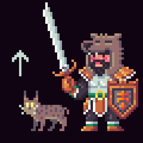 To his side was his trusty companion, a brown lynx by the name of Karl. The beast hissed, bearing its fangs in time with its master’s words, punctuating each one with a sharp tooth. The heavily armored brigand took a step closer, and the people flinched. A cruel smile graced his rugged face. “Gold. Jewelry. Anything valuable. Now.”