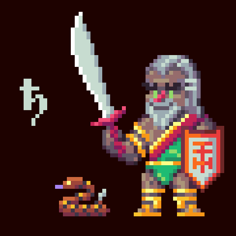 Bruno Vanquisher of the Savannah keeps his falchion at the ready as the Ghost Eater Corky of the Technochrome walks off into the desert. After a moment, Bruno Vanquisher of the Savannah rests his falchion once again on his stomach and closes his eyes, resting, until… he’s approached by Cosmic Mage Gwendolin of the Tower.