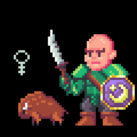 One fateful day, bandits attacked their homestead. The young man grabbed all he could find at hand to defend himself: A small buckler, and a hunting knife. His hours of training paid off, and he carved through the bandits in a gory display.